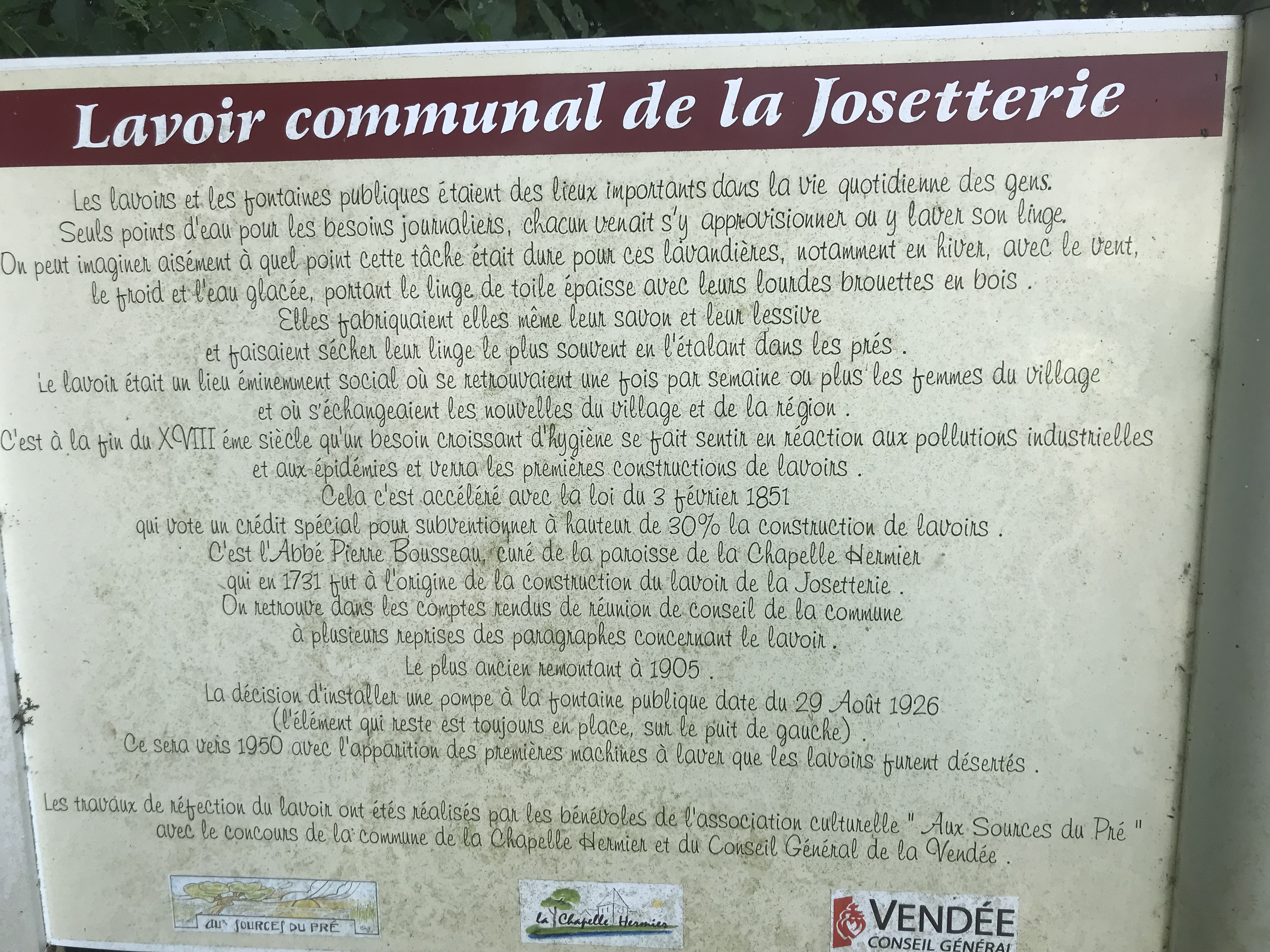 Un moment très instructif qui a permis de découvrir le patrimoine de la Chapelle Hermier, le fonctionnement d’un lavoir et de s’imaginer la vie des chapelois et chapeloises avant 1950 : l’apparition des premières machines à laver.